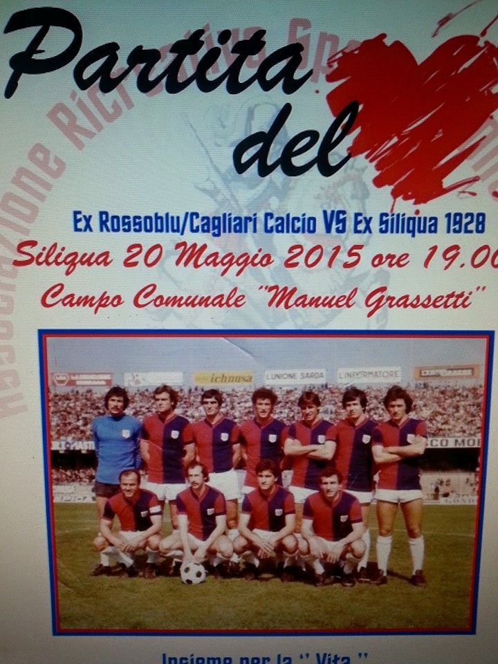 La nuova società sportiva “Arsd Siliqua 2015” organizza per mercoledì 22 aprile alle ore 18,00, presso i locali comunali del Montegranatico, un’assemblea di presentazione della “Partita del Cuore”: ex rossoblù del Cagliari scudettato contro vecchie glorie del Siliqua calcio. Tutti insieme a favore dell’associazione italiana Sla (Sclerosi laterale amiotrofica). Un evento sportivo in ricordo anche di due indimenticati campioni, colpiti e stroncati da questa patologia: Gianluca Signorini (ex calciatore del Genoa) e Stefano Borgonovo (ex calciatore della Fiorentina). La gara tra le vecchie glorie del Cagliari calcio e del Siliqua è in programma al campo comunale “Manuel Grassetti”, col fischio d’inizio fissato alle ore 19,00 di mercoledì 20 maggio. Le vecchie glorie del Cagliari calcio, tra cui figureranno alcuni protagonisti della squadra che vinse lo scudetto ben quarantacinque anni fa (è probabile infatti la presenza di Tomasini e Brugnera), scenderanno in campo per affrontare gli over 45 della formazione locale. L’iniziativa è promossa dalla neonata associazione ricreativa sportiva dilettantistica “Siliqua 2015”. Fanno parte della rappresentativa rossoblù il portiere Copparoni, i difensori Leschio e Loi, i centrocampisti Quagliozzi, Roccotelli e Bellini e l’attaccante Gigi Piras.