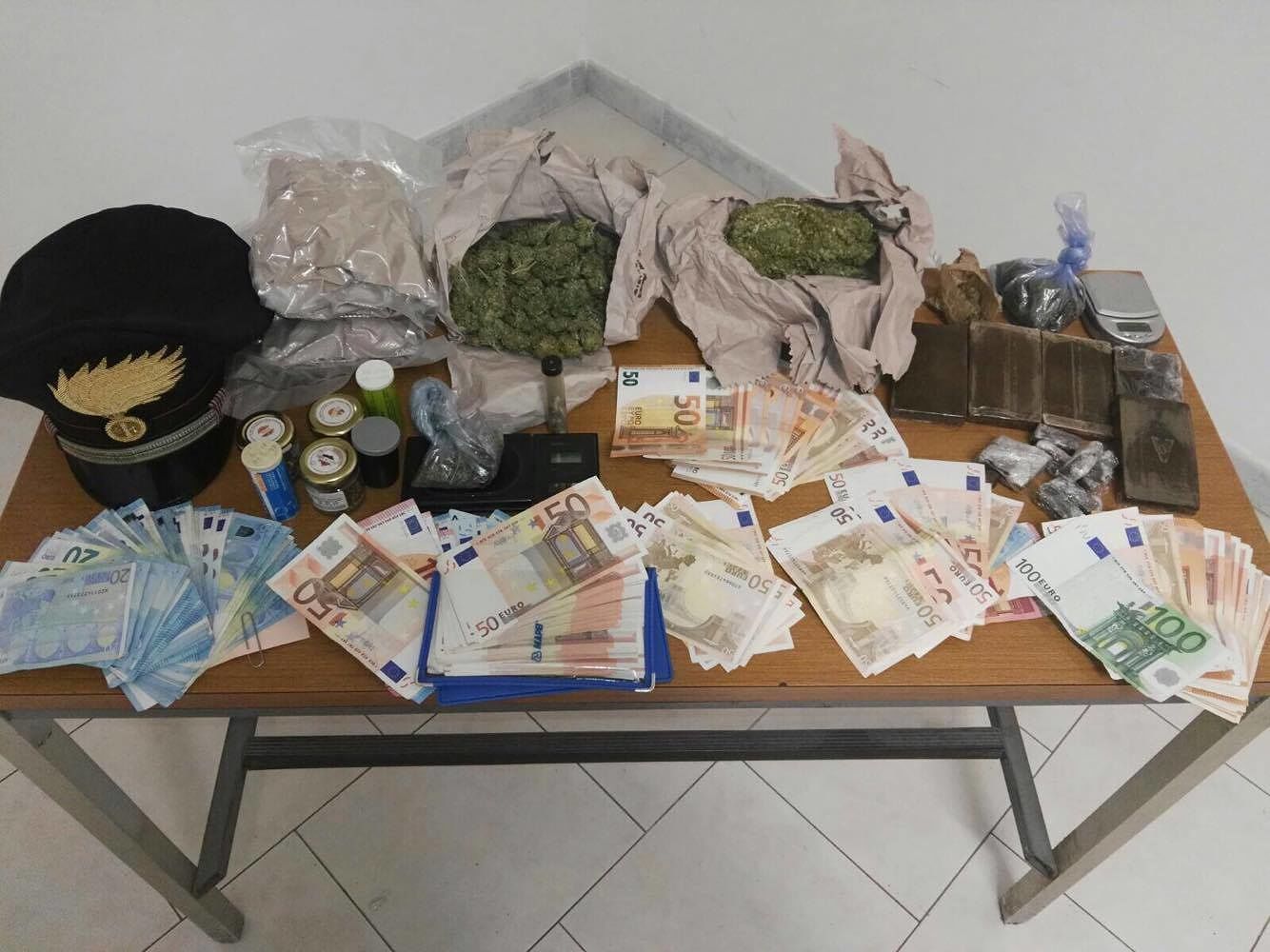 I militari, impegnati in una vasta operazione antidroga che monitorizza l’attività di tutti gli spacciatori locali, da tempo seguivano i movimenti del Tronci, che ieri è stati sorpreso mentre spacciava all’interno del suo negozio di abbigliamento sito in via Roma a Sinnai, una busta contenente 120 grammi di marijuana a Pusceddu. La conseguente perquisizione estesa al negozio ed alla abitazione del Tronci, consentiva di recuperare e sequestrare350 grammi di marijuana, hashish, due bilancini di precisione, materiale per il confezionamento dello stupefacente e 7.500 euro, ritenuto provento dell’attività di spaccio. La perquisizione all’abitazione del Pusceddu, consentiva ai militari di recuperare e sequestrare ulteriori 700 grammi circa di hashish; 120 di marijuana, un bilancino di precisione e 2.700 euro, ritenute provento dell’attività di spaccio ed altro materiale per il confezionamento dello stupefacente. Gli arrestati, al termine delle formalità di rito sono stati tradotti presso le rispettive abitazioni in regime di arresti domiciliari, in attesa dell’udienza di convalida fissata per domani.