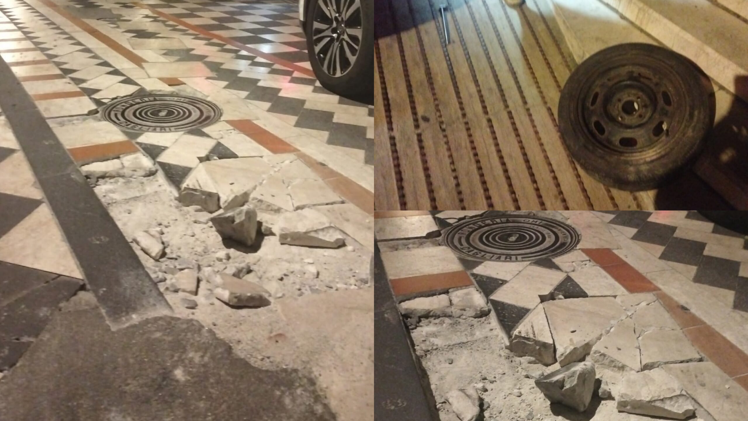 Mattonelle rotte e di sbieco che sono diventate una vera e propria minaccia per gli automobilisti e non solo: “Se malauguratamente si mette un piede in fallo, ci si squarcia la gamba”.