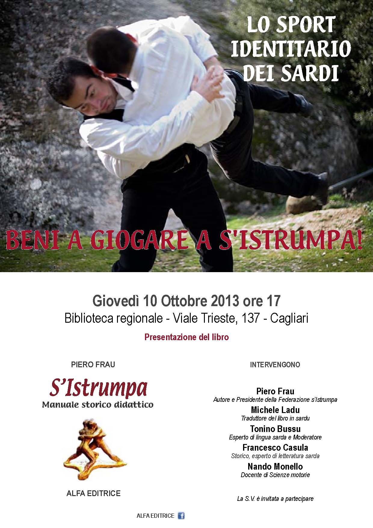 Giovedì 10 ottobre alle 17, presso la Biblioteca Regionale in viale Trieste 137 a Cagliari, sarà presentato il libro “S’Istrumpa” di Piero Frau, edito da Alfa Editrice. Il volume propone un’analisi di spiccato approfondimento didattico su una delle forme di espressione fisica fra le più remote nel Mediterraneo, offrendo una relazione esaustiva e sistematica della disciplina, a partire dalla vicende storiche più antiche fino alla sua diffusione nell’isola.