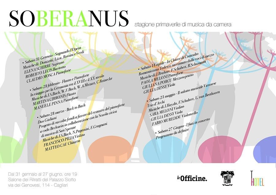 Sabato 31 gennaio alle 19 si terrà presso il Salone dei Ritratti di Palazzo Siotto (via dei Genovesi 114, Cagliari) il primo dei sei appuntamenti di Soberanus, la rassegna di musica da camera organizzata dalla Fondazione “Giuseppe Siotto” in collaborazione con l’associazione Le Officine, sotto la direzione artistica della violinista Sara Meloni.