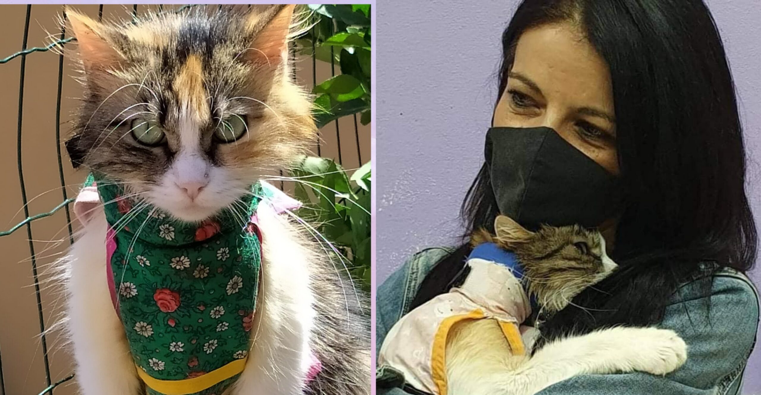 Dopo un anno Miccia Divina da 10 cm di circonferenza è arrivata a 17 cm, abbiamo raggiunto il primo traguardo che ci consente di affrontare l’ intervento. La prima ipotesi era quella di andare a Roma da loro ma per Miccia sarebbe stato troppo stressante, allora sempre da Roma ci danno il contatto della dottoressa Laura Demontis dell’ ambulatorio veterinario di via Barone Rossi a Cagliari . Prendiamo appuntamento e la dottoressa ci propone due alternative; la ricostruzione della ferita oppure un innesto che sarebbe stato più complicato. Io e Regina abbiamo subito capito che Laura era la dottoressa che stavamo cercando, una persona sensibile che parlava di Miccia con amore ma la cosa più importante mi avrebbe consegnato Miccia dopo l’intervento. Dovevo risolvere il problema del drenaggio, perché Miccia lo avrebbe strappato, così ho creato una tasca sopra un bustino fatto da me per l’intervento che durò due ore.Al suo termine Laura mi dice che è riuscita a eseguire la ricostruzione senza fare l’innesto, ero commossa nel vedere finalmente il collo di miccia chiuso, la parte sinistra la più lesionata continuava a cedere mentre la parte destra si era chiusa, ha dovuto eseguire altri due interventi . Oggi Miccia Divina ha un piccolo buco di 2 cm per 2 cm, che stiamo facendo chiudere in modo naturale per non sottoporle altro stress. La gattina ha iniziato a giocare, a fare cose che prima non poteva fare per via della grave lesione. La dottoressa è sempre presente e la ringrazio, perché è una persona che ha messo in primo piano il bene di Miccia Divina dandomi la possibilità di prendermi cura di lei come ho sempre fatto. Come direbbe Miccia :” Io sono Miccia Divina, la gattina con 2 C ( volutamente il nome Miccia porta la doppia c per evidenziare il coraggio e la forza che la gattina ha avuto nel continuare a vivere) la gattina che ha vagato per 3 mesi con cappio al collo, sono la guerriera niente e nessuno mi può fermare!”