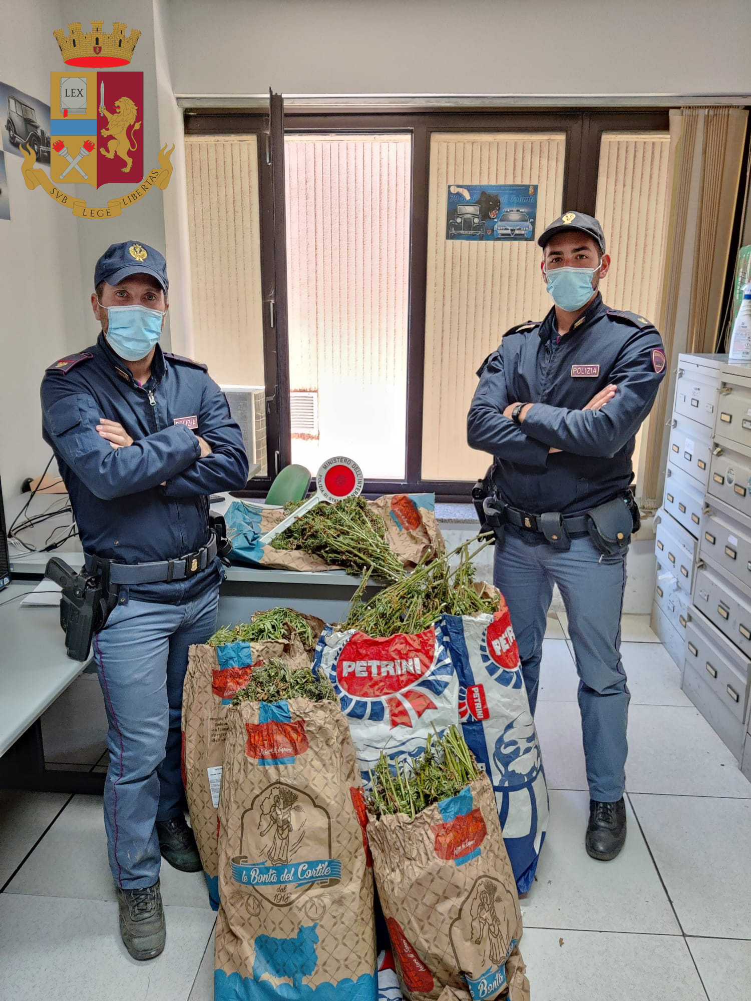 I poliziotti, dopo aver fermato il veicolo, insospettiti dal forte odore che proveniva dal fuoristrada, hanno chiesto ai due che materiale trasportassero. I due uomini, con fare ambiguo che denotava un certo nervosismo, hanno asserito che i sacchi stipati nel cassone contenevano mangime per il bestiame. La risposta poco convincente ha indotto la pattuglia a eseguire una perquisizione che ha consentito di rinvenire in sette sacchi di carta circa 23 chilogrammi di marijuana in fase di essiccazione. Considerate le circostanze, i due nuoresi sono stati tratti in arresto con l’accusa di possesso ai fini di spaccio di sostanze stupefacenti. Gli arrestati su disposizione del magistrato sono stati ristretti nelle loro abitazioni in attesa del giudizio di convalida.