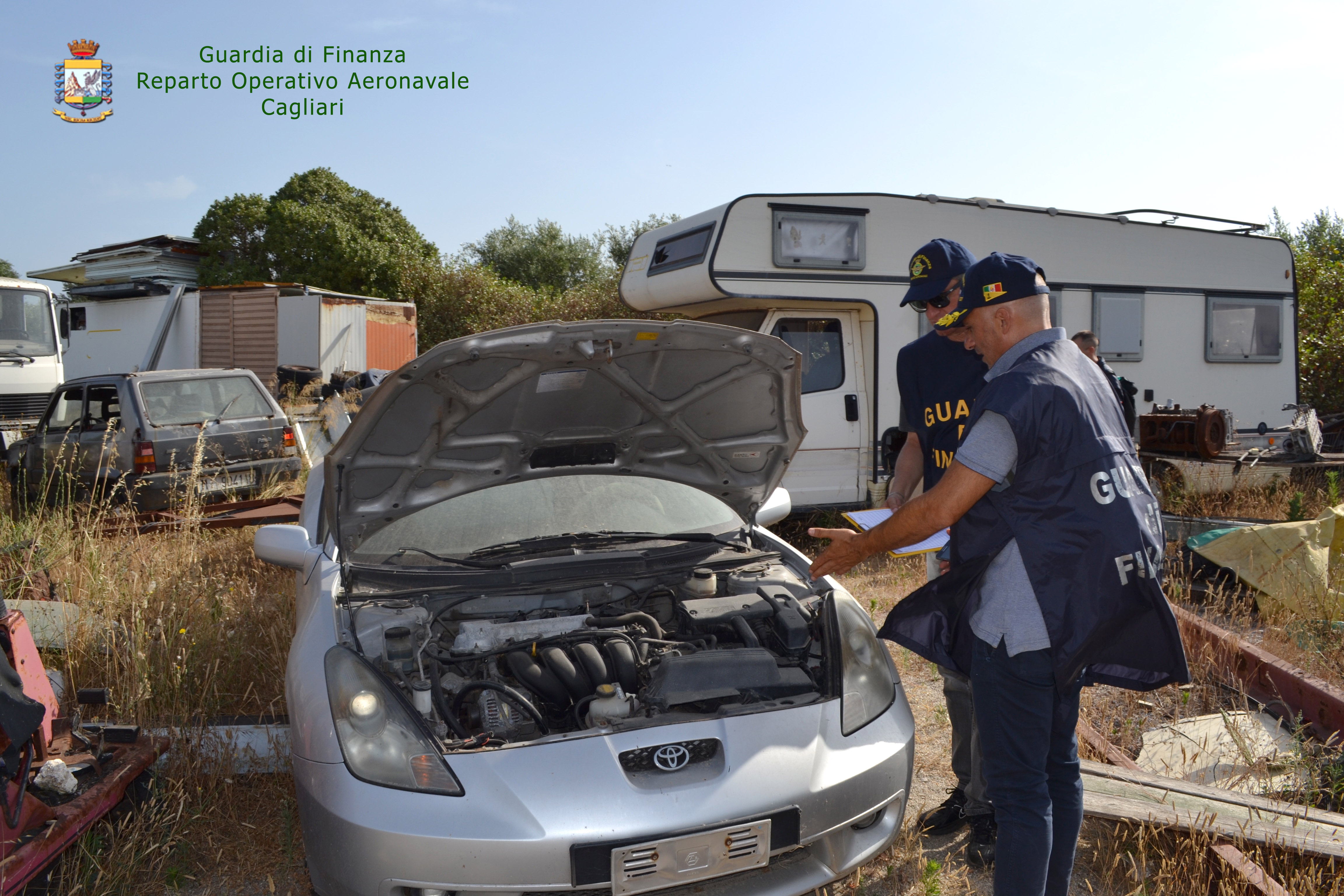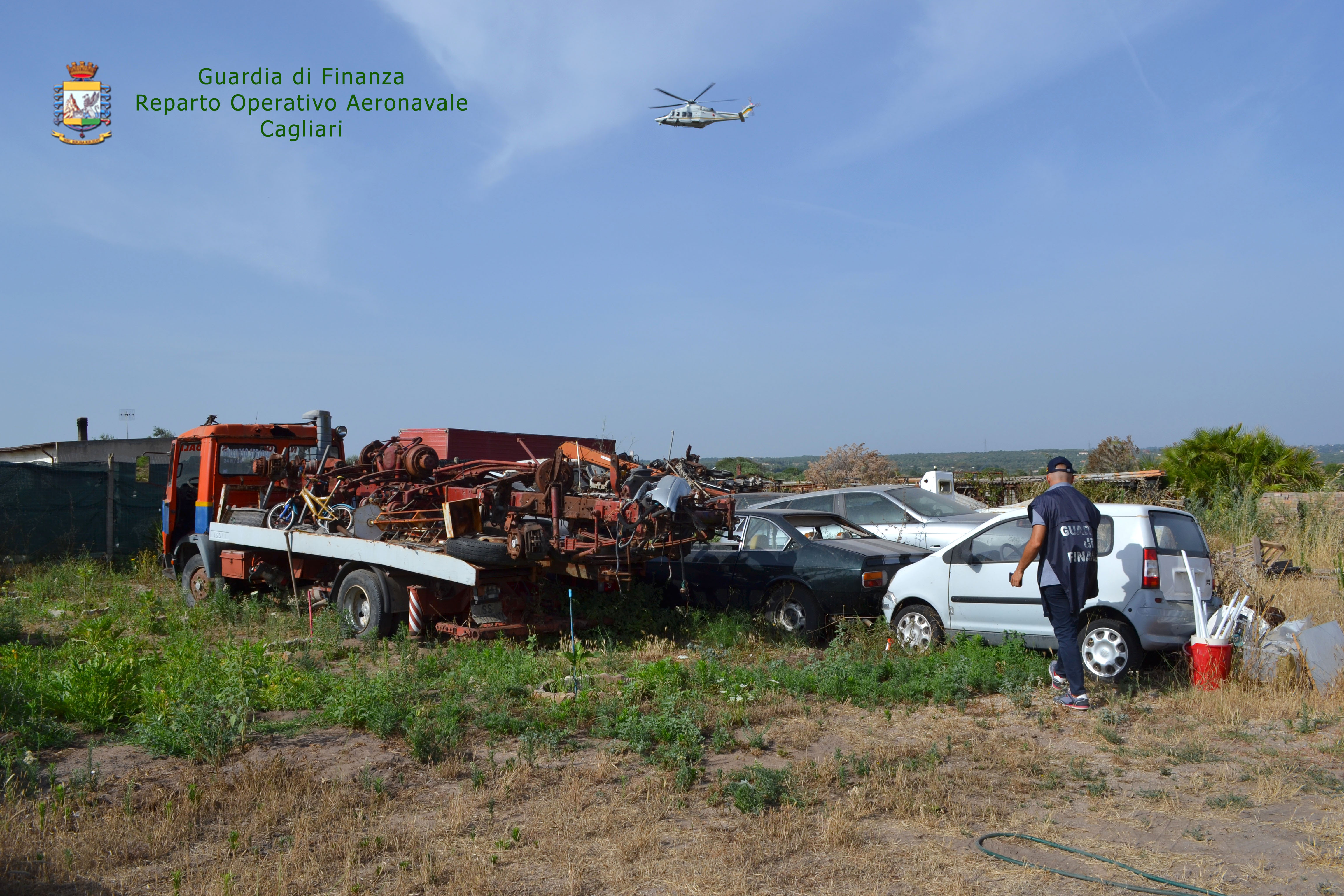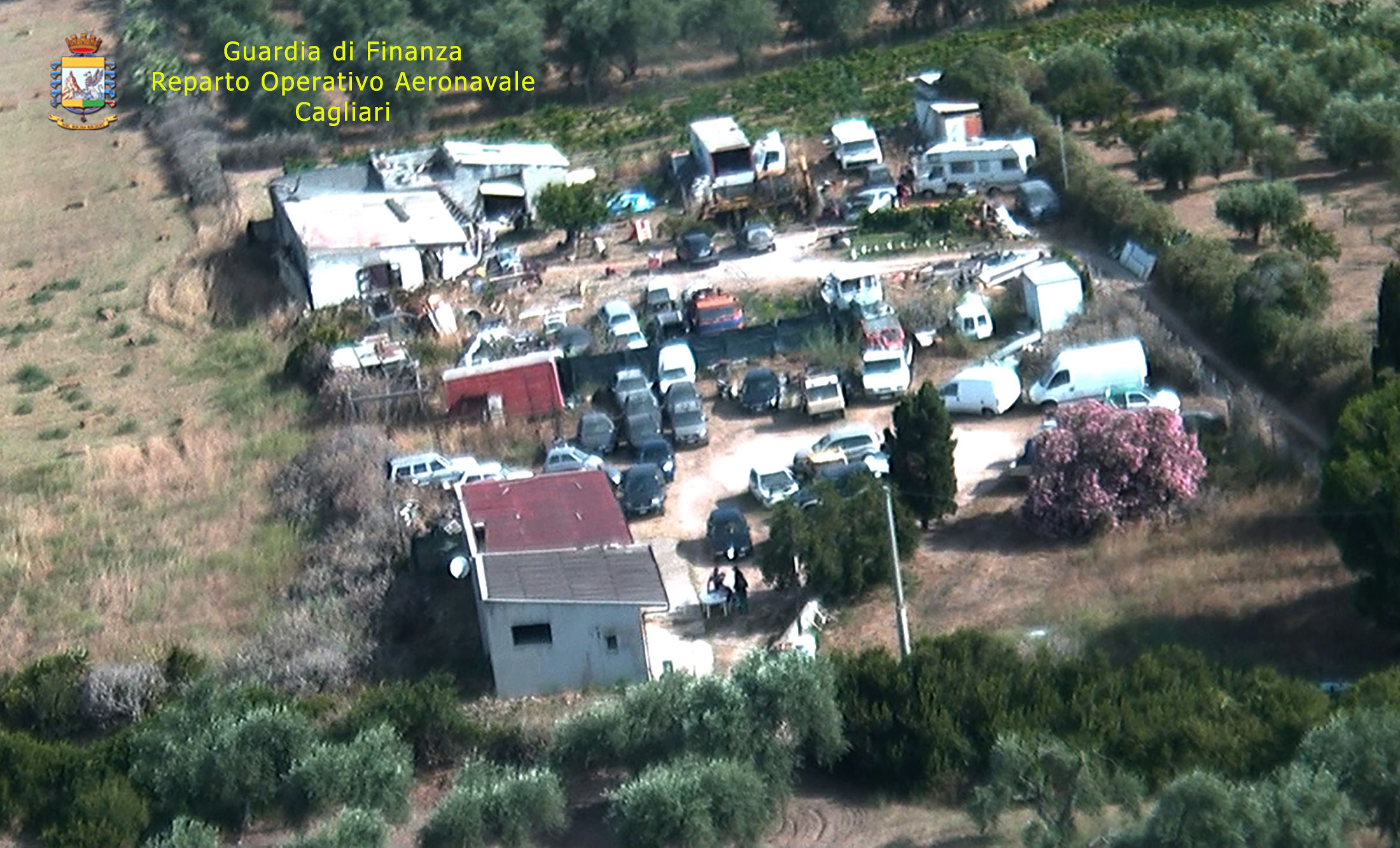 Le ostruzioni presenti, quali la presenza di unità abitative private, hanno richiesto l’adozione di un provvedimento di perquisizione dell’Autorità Giudiziaria che è stato eseguito (con il supporto di un elicottero della Sezione Aerea di Elmas) al fine di poter inventariare la moltitudine di autoveicoli presenti e documentare i variegati accumuli di rifiuti depositati sul terreno.