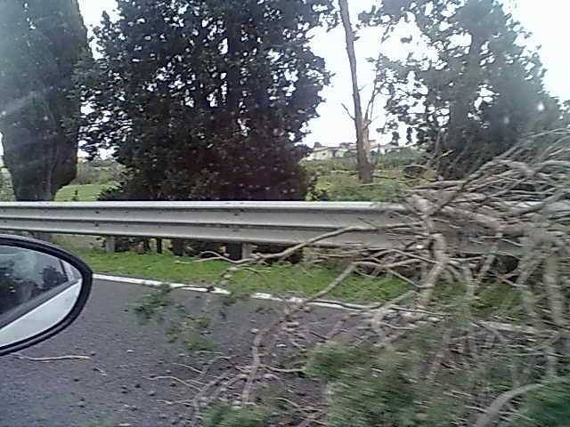 Il ciclone Cleopatra pare non voler dare nessuna tregua all’isola. Continuano le forti raffiche di vento e pioggia a causare danni nel cagliaritano. E’ di pochi minuti fa la notizia di un albero caduto in mezzo alla carreggiata della ss130, all’altezza di Decimomannu-Assemini. L’invasione di entrambe le corsie, causata dalla caduta dell’albero, ha provocato non pochi problemi al traffico e l’ intervento dei Carabinieri, in un tratto di strada molto trafficata. La foto è stata inviata in diretta da Andrea.