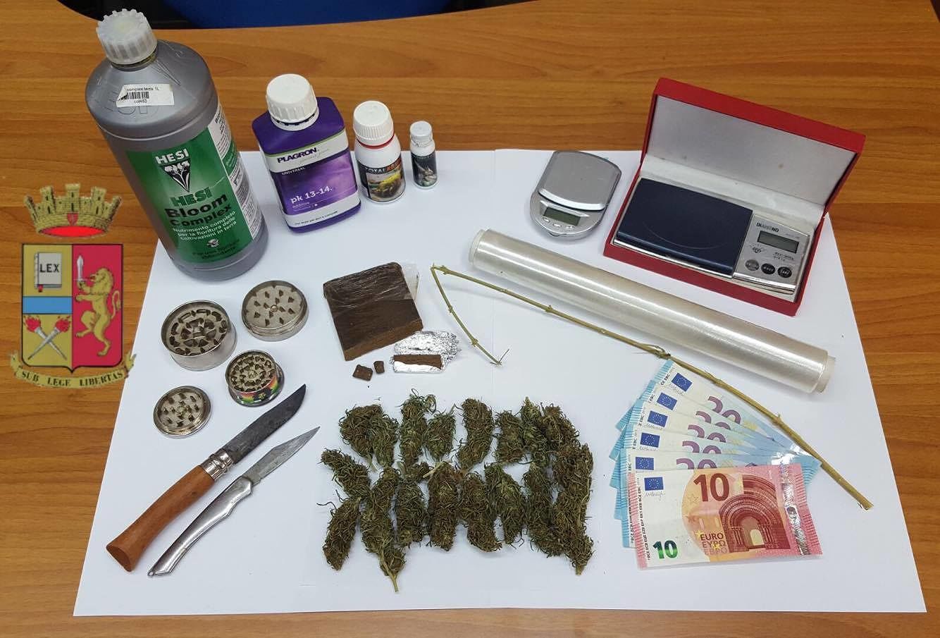 Nel corso delle operazioni di perquisizione sono stati sequestrati a carico del senegalese diverse confezioni di hashish pronte allo smercio nella zona della Marina. Durante tali fasi si decideva di procedere anche alla perquisizione domiciliare a carico di E.D. in zona San Michele e all’interno di un ripostiglio venivano rinvenuti e sequestrati circa 100 grammi di Hashish e 30 di Marjiuana e in camera da letto tutto il necessario per il confezionamento della droga 2 bilancini di precisione, una rotolo di pellicola trasparente, un coltello a serramanico, marca Opinel, della lunghezza di complessiva di cm 18.
