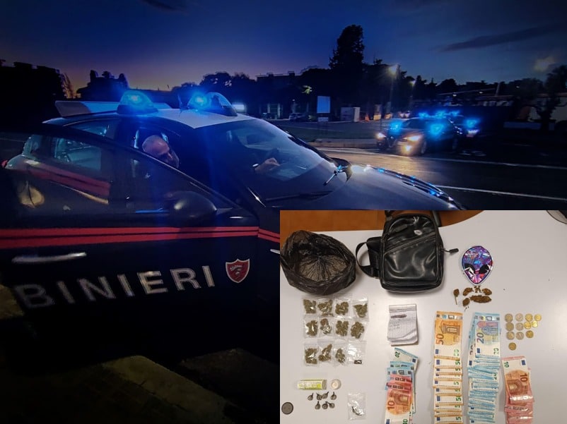 I carabinieri, coadiuvati da personale in abiti civili, hanno individuato i due in atteggiamento sospetto all’interno di un’area poco illuminata di un giardino condominiale; non appena si sono accorti della presenza dei militari che si avvicinavano in borghese e del sopraggiungere dell’auto di servizio con i lampeggianti accesi, i due hanno cercato di allontanarsi repentinamente. Il movimento non è però passato inosservato ai carabinieri che hanno deciso di identificarli e sottoporli a controllo. La perquisizione personale ha consentito di rinvenire in loro possesso 11 dosi di marijuana per un peso complessivo di oltre 15 gr., 5 bustine contenenti infiorescenze di marijuana per un peso complessivo di gr. 4, 1 dose di hashish, 9 dosi di cocaina per un peso complessivo di circa gr. 4 unitamente alla somma contante di 1000 euro.
