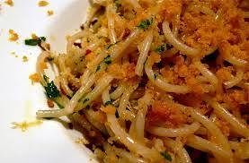 2. Portate a ebollizione abbondante acqua in una pentola, salatela, immergete gli spaghetti e cuoceteli al dente, per il tempo indicato sulla confezione. Nel frattempo, scaldate 2 cucchiai di olio extravergine in un’ampia padella antiaderente, unite le fettine d’aglio e rosolatele finché saranno dorate, poi eliminatele e spegnete. In un’altra padella antiaderente rosolate anche il pangrattato con 2 cucchiai di olio a fiamma media, finché sarà dorato, poi spegnete.