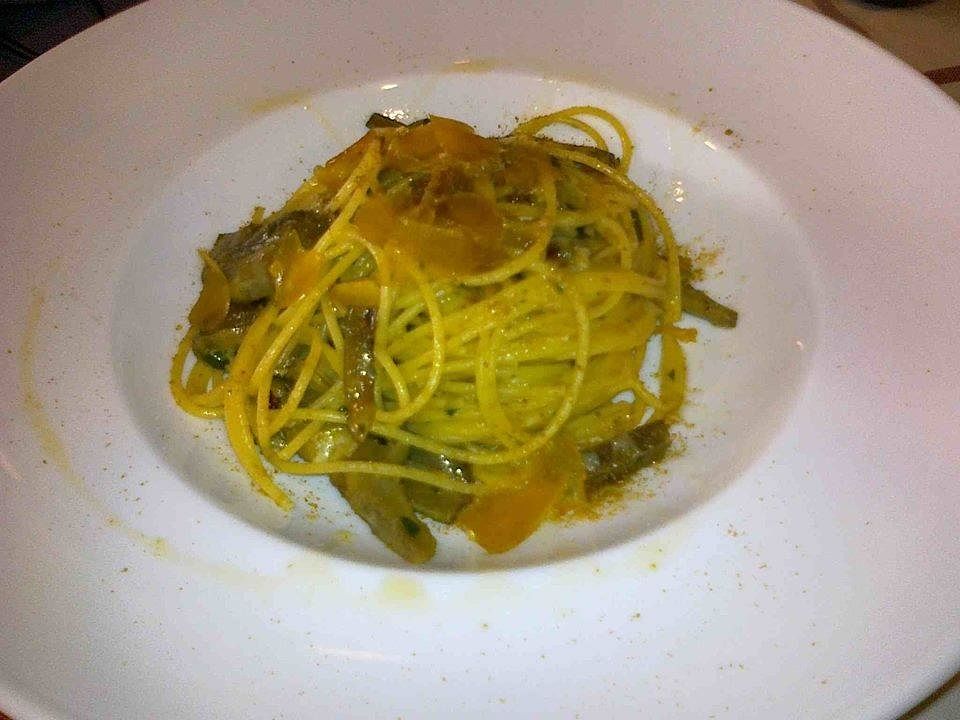 SPAGHETTI CON CARCIOFI E BOTTARGA 476 kcal 20.06 P 81,60 G 20.6 L elaborazione MENUTRIX INGREDIENTI E CALORIE A PORZIONE PASTA ALIMENTARE 80 g CARCIOFI 100 g OLIO EXTRA VERG.DI OLIVA 10 G PREZZEMOLO 10 G BOTTARGA AGLIO FRESCO Preparazione AFFETTARE FINEMENTE I CARCIOFI, METTERLI IN UNA TAZZA CON ACQUA FREDDA ACIDULATA CON IL SUCCO DI LIMONE, PER EVITARE CHE ANNERISCANO. IN UNA CASSERUOLA DISPORRE LE FETTINE DI CARCIOFO, UNO SPICCHIO DI AGLIO E UN TRITO DI PREZZEMOLO. LASCIARE CUOCERE PER CIRCA 20 MINUTI AGGIUNGENDO ACQUA ALL’OCCORRENZA. LESSARE LA PASTA, SCOLARLA E CONDIRLA CON LA SALSA OTTENUTA, AGGIUNGERE LA BOTTARGA. DI MUGGINE TAGLIATA A SCAGLIE SOTTILI E SERVIRE.