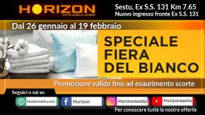 Da Horizon è iniziata la Fiera del Bianco. Nel nuovissimo reparto tessile sarà possibile acquistare la biancheria per la casa a prezzi incredibili. Dare un nuovo look alla propria abitazione sarà una passeggiata. Tantissimi gli articoli disponibili per ogni ambiente domestico: lenzuola, trapunte, piumini e copripiumini, coperte, plaid, tende, tappeti e tanto altro. La promozione sarà valida dal 26 gennaio al 19 febbraio.