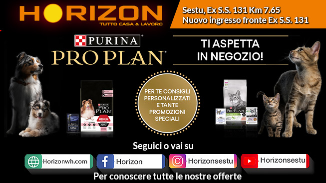 Ma le novità non finiscono qui! Il 30 aprile e il 21 maggio Horizon organizza, in collaborazione con Nestlè Purina, due imperdibili giornate promozionali dedicate ai nostri amici a 4 zampe. Per restare sempre aggiornati su news e promozioni, sarà sufficiente visitare i social network aziendali o collegarsi al sito www.horizonwh.com. Horizon si trova a Sestu, Ex S.S. 131 KM. 7.650 (nuovo ingresso fronte Ex S.S. 131). Il punto vendita è aperto tutti i giorni dalle 8.00 alle 21.00.