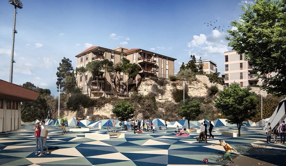 “Verranno rimosse le recinzioni del palazzetto dello sport e dell’ex palaboxe per favorire la visione di un unico complesso sportivo, nonché valorizzazione e innovazione delle strutture sportive”, spiega Giorgia Melis, consigliera comunale, Pd, “tra gli interventi in oggetto verrà realizzata una grande piazza sportiva con una pavimentazione unificante realizzata con triangoli colorati in diverse tonalità di blu e bianco che rendano lo spazio unificato, dinamico e tridimensionale, arredi, aree attrezzate ludiche e sportive, spazi socio ricreativi, un percorso espositivo, un’area relax”.