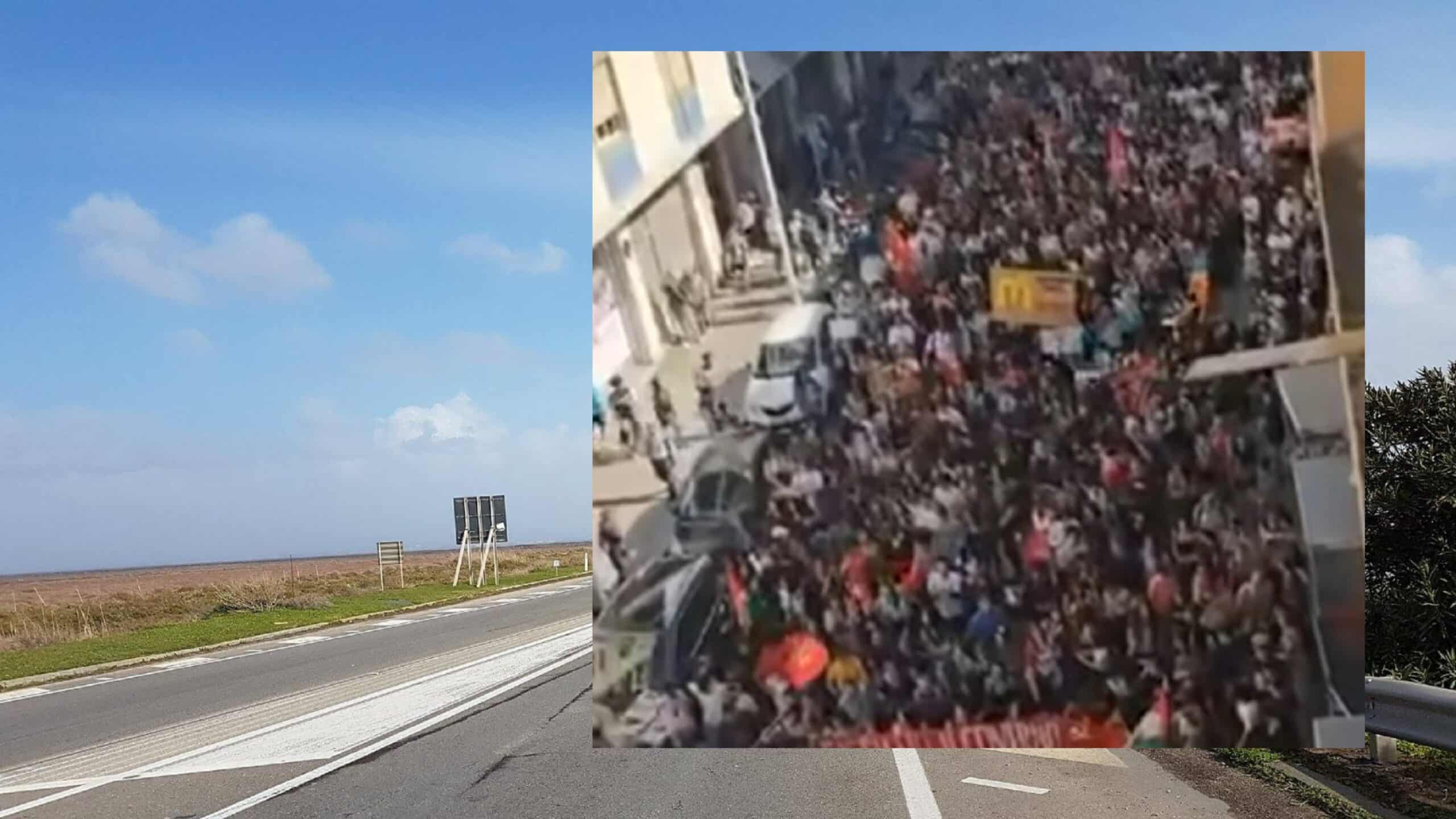 La protesta si è spostata anche lungo la statale: un gruppo di manifestanti infatti ha deciso di spingersi oltre il corteo e bloccare temporaneamente la viabilità.
