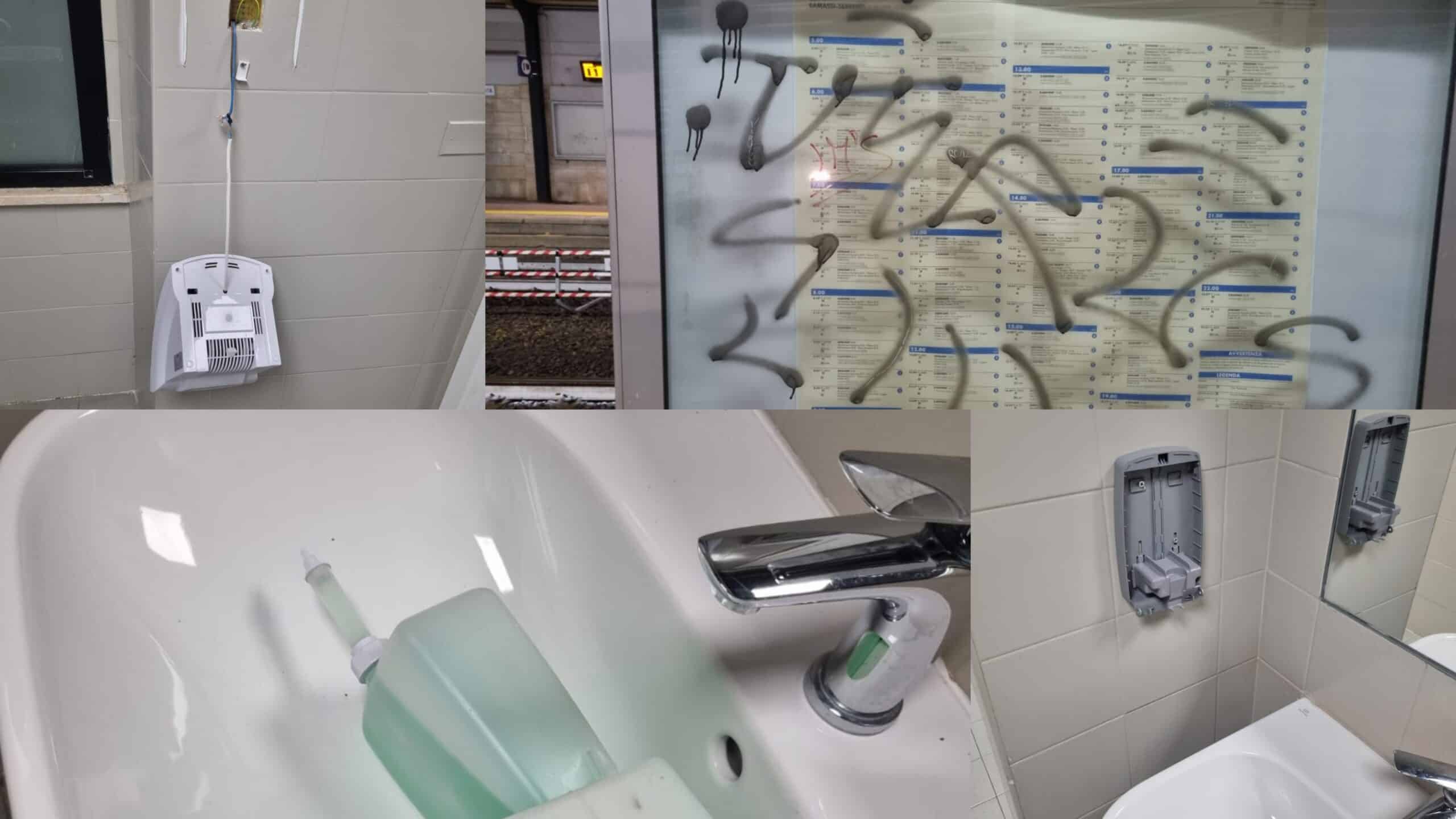 A Serramanna è stato il bagno pubblico a subire le conseguenze peggiori da parte di chi ha distrutto l’asciugamani e il porta sapone. A Samassi, invece, artisti in erba hanno espresso la capacità di disegnare e pasticciare tra pali e tabelloni che comunicano gli orari dei treni.