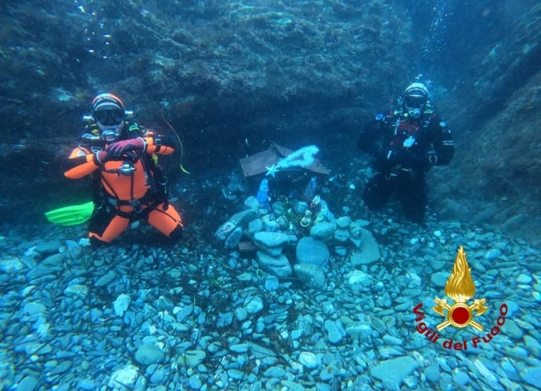 Stintino, si rinnova la tradizione del presepe subacqueo costruito dai ragazzi della Ge.Na., posato nel fondo marino grazie al prezioso aiuto del nucleo sommozzatori del comando dei vigili del fuoco di Sassari. La manodopera delle statuine, è stata interamente curata dai ragazzi ospitati nella struttura dedicata al recupero e alla riabilitazione di giovani con disabilità. L’evento si è svolto ieri mattina, 14 Dicembre, presso la località Coscia di donna, presente anche l’associazione motoclub dei Vigili del fuoco di Sassari.
