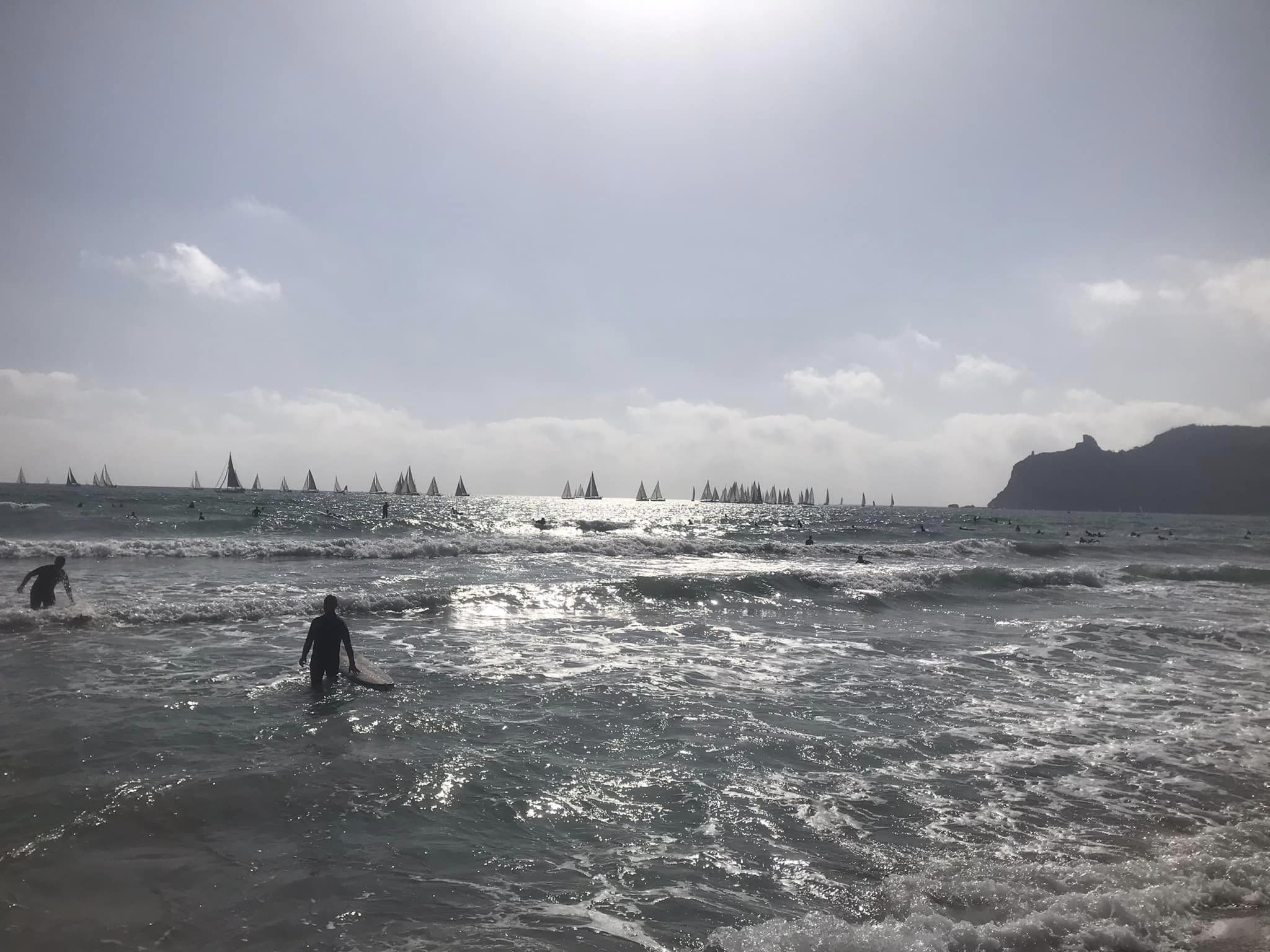 Stratosferica “ottobrata” al Poetto di Cagliari, tra onde fantastiche e vele in festa. Una domenica “bestiale” di fine ottobre in Sardegna: il clima mite, le onde speciali, gli ultimi miracoli di una bellissima estate che ha riportato tanti turisti in Sardegna, col Covid ormai alle spalle e tante attività che hanno potuto riprendere a lavorare. Nella foto scattata oggi da Laura Deiana si può ammirare ancora una volta, sotto una luce particolare, la bellezza del lungomare cagliaritano con sullo sfondo la Sella del Diavolo. E con tantissime persone tutto il giorno in spiaggia, compresi molti turisti stranieri ancora presenti nell’Isola in pieno autunno.