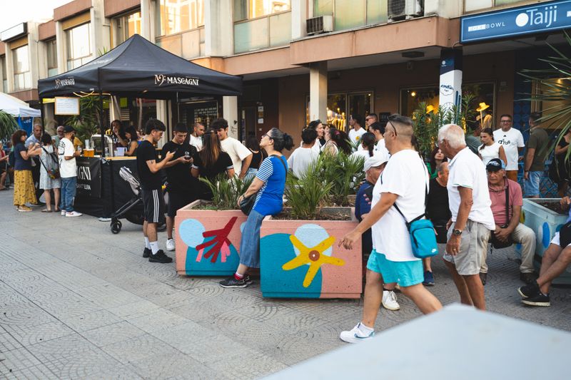 Anche l’ultima giornata è stata all’insegna della contaminazione tra arti visive, musica dal vivo e impegno sociale, confermando l’anima inclusiva e partecipativa dell’evento. La mostra diffusa “NON IN MIO NOME”, allestita lungo l’intero percorso grazie alla collaborazione con le attività commerciali, continua ad attirare pubblico e consensi. Le opere esposte, realizzate da decine di artisti, resteranno in vendita nelle 16 attività ristorative aderenti, e il ricavato sarà destinato alla ricostruzione dell’ospedale Al Awda a Gaza.