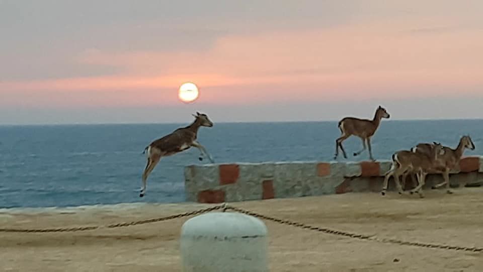 Succede solo in Ogliastra, precisamente ad Arbatax. All’alba un gruppo di mufloni sfila, corre, salta, di fronte al bellissimo monumento naturale della Rocce Rosse (che già di per sè è uno spettacolo), facendosi ammirare dai presenti che si sono svegliati di buon’ora. Sicuramente gli animali si sono allontanati, come succede spesso, dal parco naturalistico nel promontorio di Bellavista dove vivono allo stato brado.