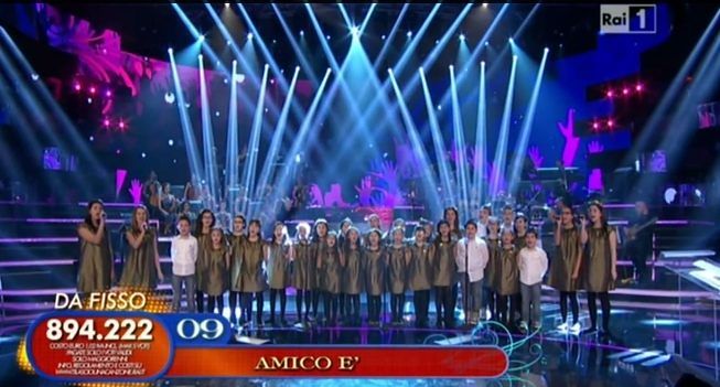 Il coro diretto da Roberto Siddi che a soli 15 anni ha fondato il gruppo di voci bianche, ha cantato “L’amico è” , una canzone simbolo di “Amicizia”. Mentre il coro canta, una dei giudici, Cecilia Gasdia, artista che aveva cantato pure con Lucio Dalla, si emoziona ed è possibile vederlo pure nel video.