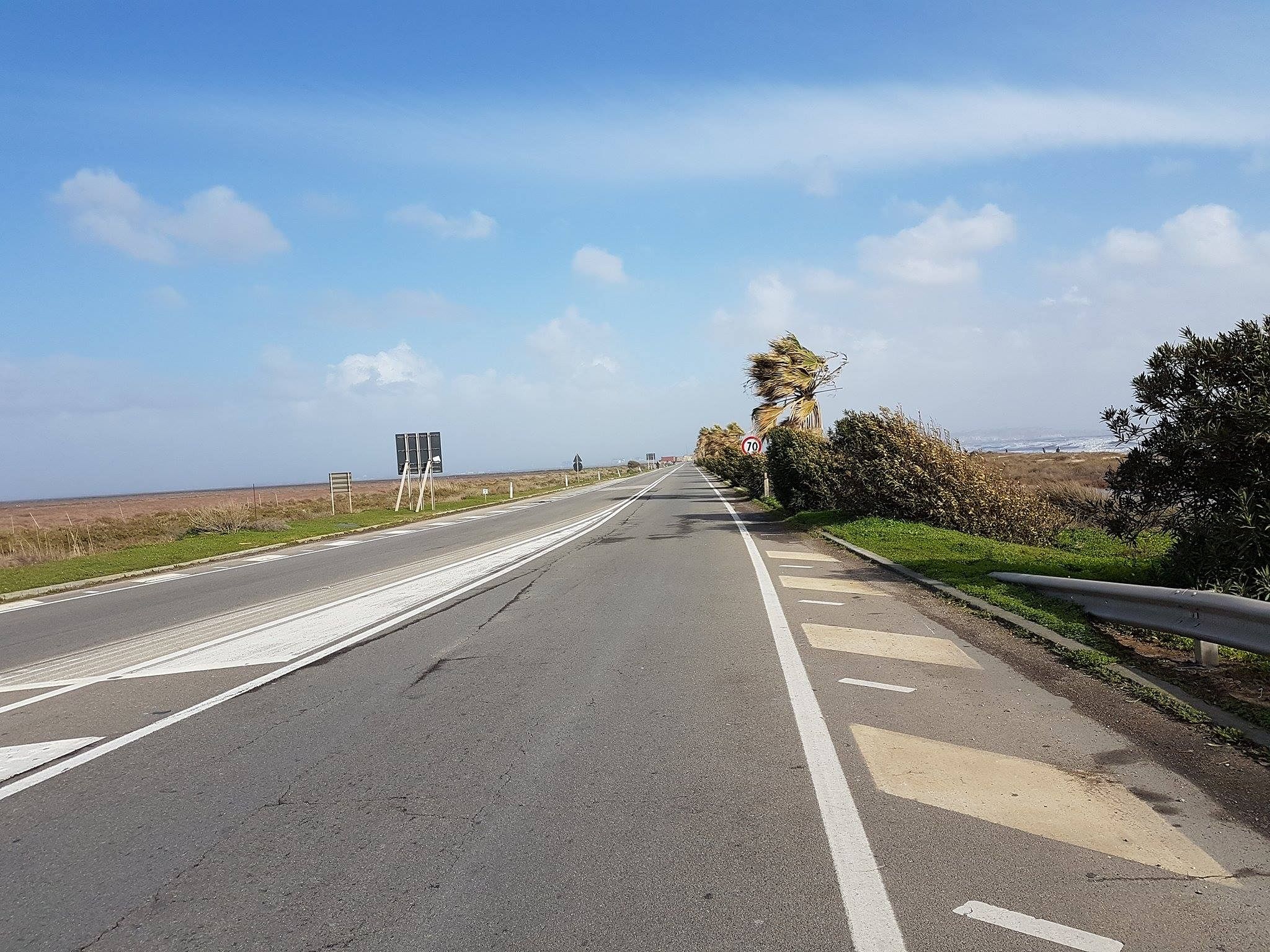 Una corsia di marcia riperta sulla statale Sulcitana. Arrivano i mezzi pesanti per liberare la SS 195 dai detriti portati dalla furia della tempesta e vento di ieri .Si lavora senza sosta ,per cercare di rimediare ai disastri che la furia della natura da giorni ha colpito la Sardegna , e ieri in particolare il Sud ,con tempeste di grandine , raffiche di vento che hanno superato i 100 km l’ora ,mareggiate ,pioggia incessante e come ciliegina una tromba d’aria che ha interessato con molta violenza i paesi di Pula ,Capoterra , Sarroch ,e altri Paesi del cagliaritano.