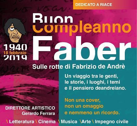 La settima edizione di Buon Compleanno Faber sarà in cartellone dal 13 febbraio al 9 marzo 2019 a Cagliari, Monserrato, Donori, Dolianova.
