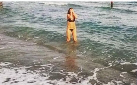 Ambra Angiolini, spettacolare bagno al Poetto a fine gennaio