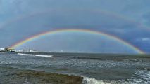 Il fotografo cagliaritano ha immortalato il momento intorno alle 14,45 nel quale l'arcobaleno ha dipinto il cielo sul lungomare cagliaritano, ...