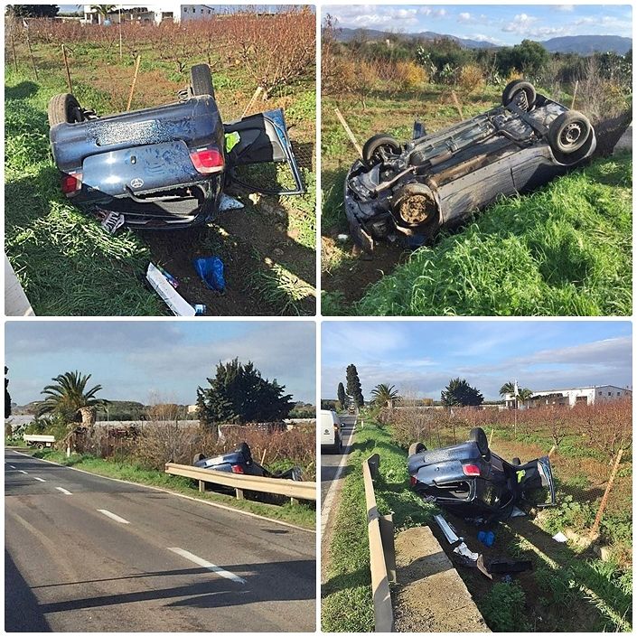 Auto ribaltata e traffico in tilt, incidente alla rotonda verso Margine Rosso: ambulanze a sirene spiegate