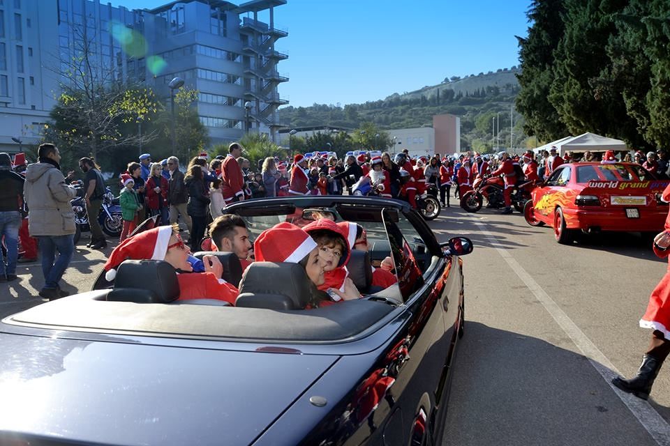 Una giornata davvero speciale per i bimbi del Microcitemico, Babbo Natale arriva in moto e dentro le auto colorate: guardate ...