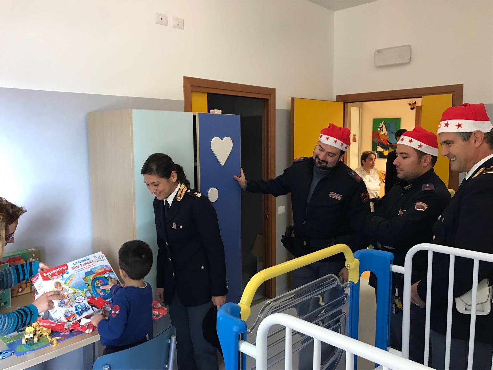 La bella sorpresa per i piccoli degenti dell'ospedale del bambino Cto di Iglesias organizzata dalla Polizia di Stato.