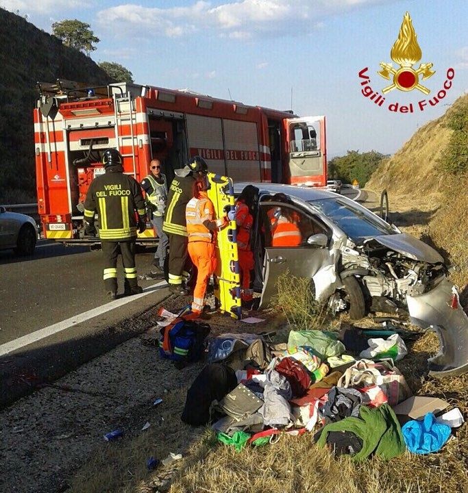 L'auto vola fuori strada, tre feriti e tanta paura sulla 131