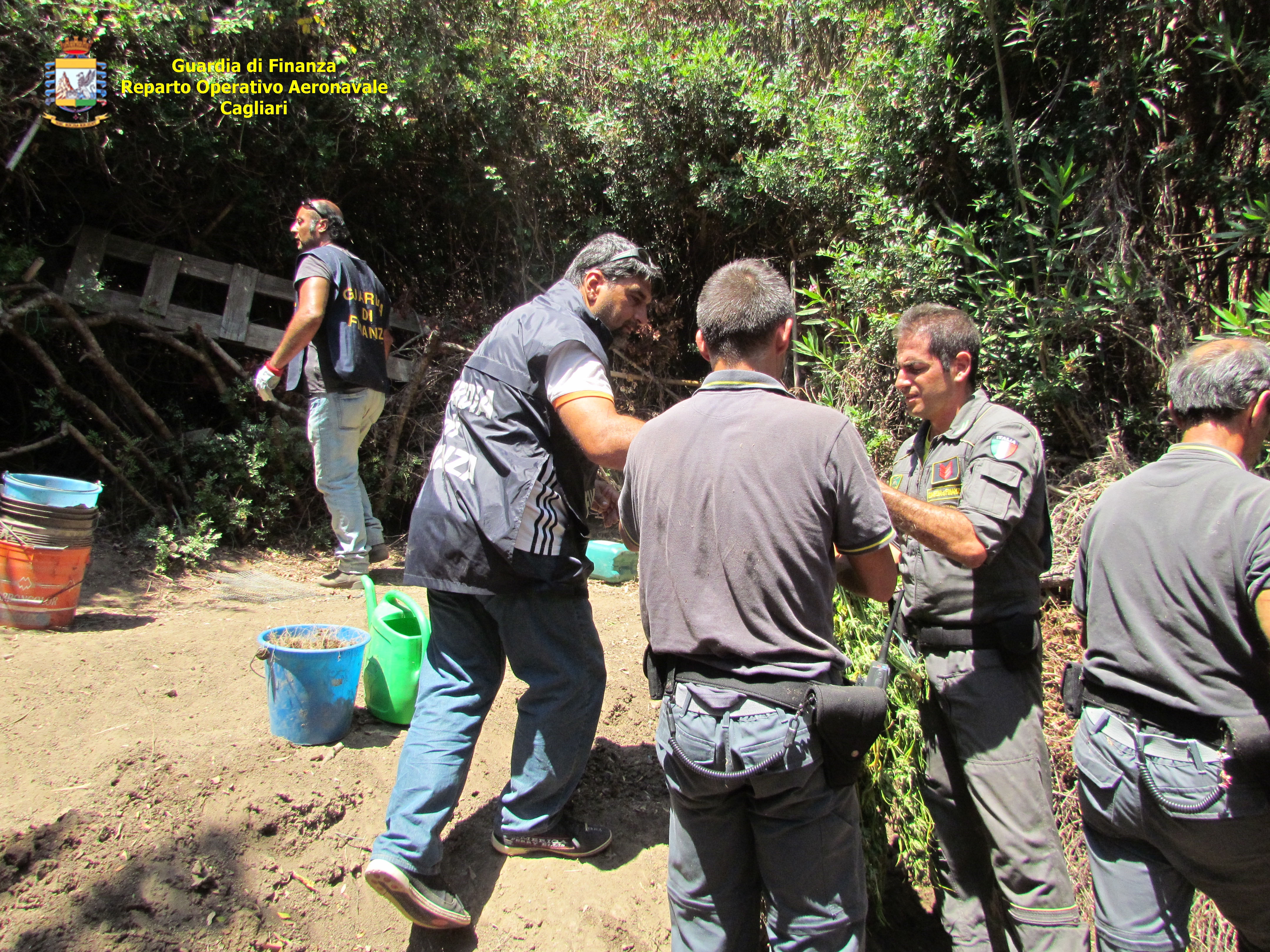 Diciotto piante di marijuana nascoste tra la fitta vegetazione a Teulada, in località Terra Nieddas: valore di mercato diecimila euro. ...