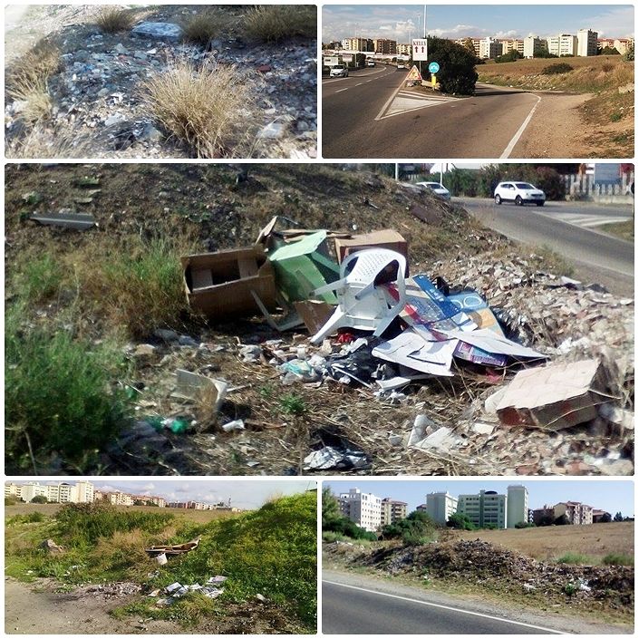 Ecco come si presenta via Guido Cavallo, nei pressi della rotatoria del cimitero di San Michele, un'enorme distesa di rifiuti, ...