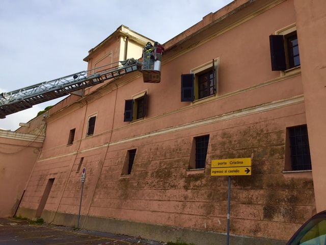 Crollano i cornicioni con pericolo per i passanti in viale Buoncammino