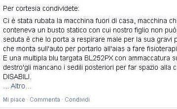 Furto a Barracca Manna, rubato anche il busto e il seggiolino di un bimbo colpito da un'ischemia. Condividete questo appello