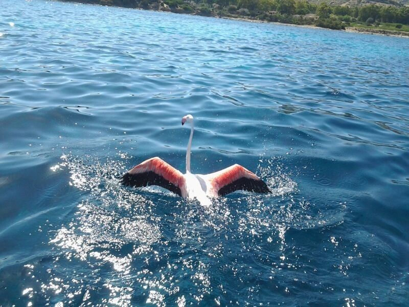 Fenicottero ferito da tempo nello stagno di Cabras, salvataggio spettacolare del Corpo forestale