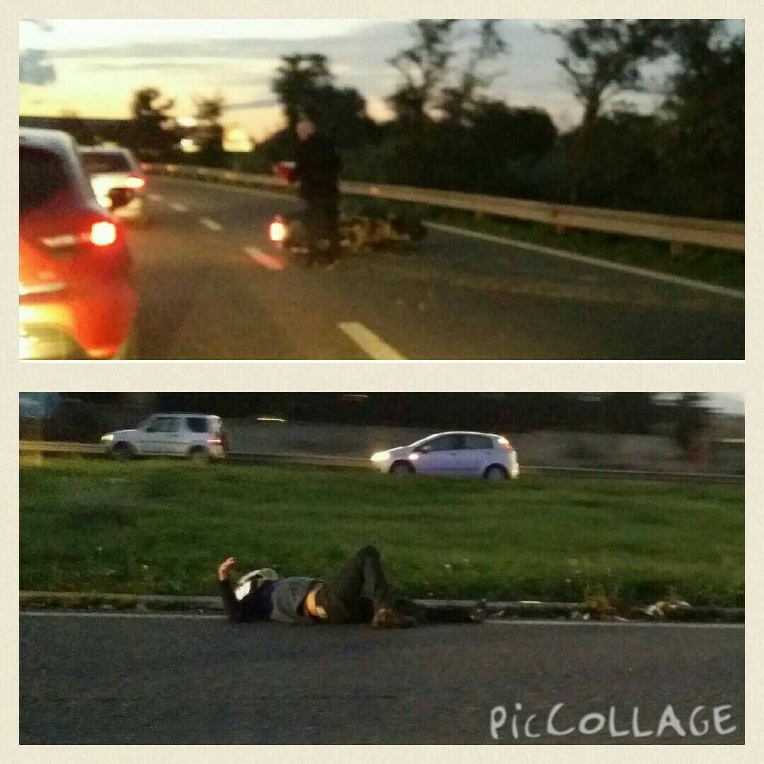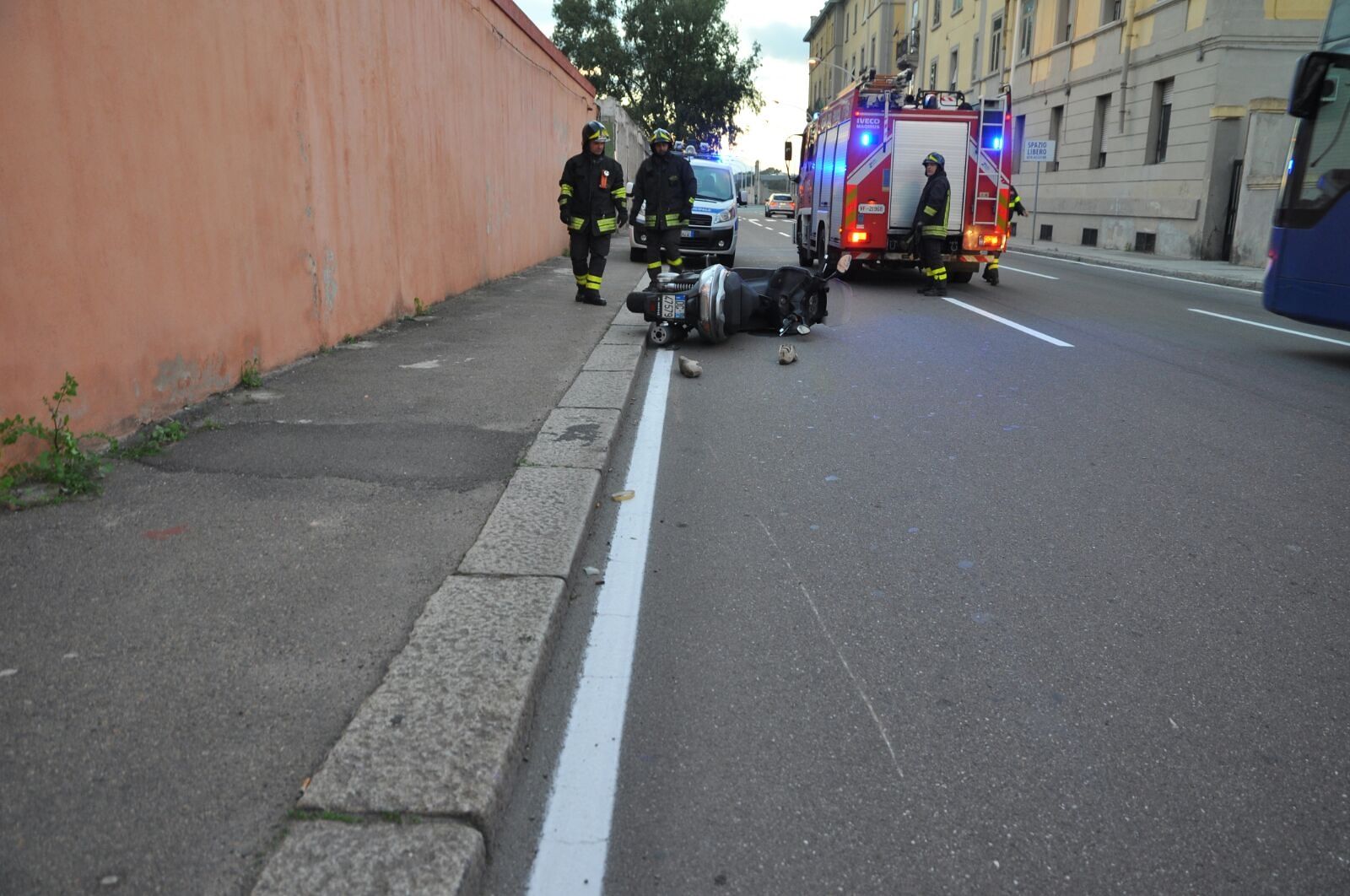 L'episodio in via Capula. Dopo l'urto la moto strisciava per alcuni metri sull'asfalto andando a sbattere su una Volvo in ...