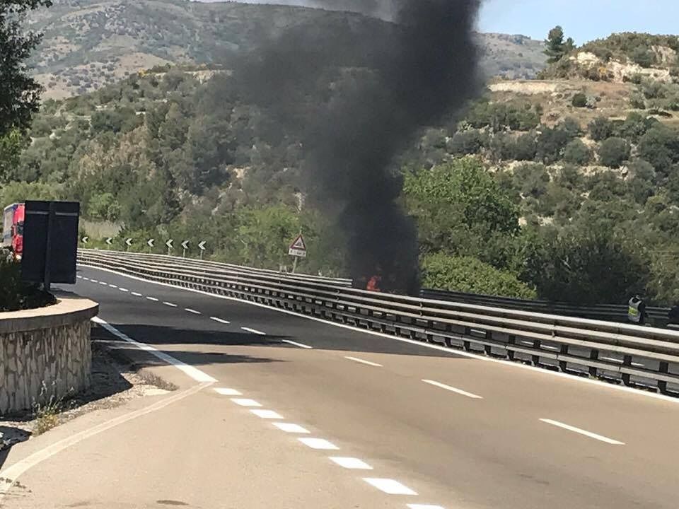 Un'auto avvolta dalle fiamme: questa la scena a cui hanno assistito gli automobilisti che percorrevano la SS131 al km 196