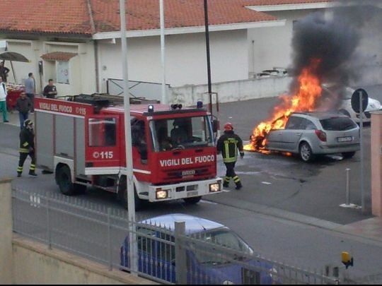 Station Wagon a fuoco in pieno giorno, proprio davanti al apalzzo dove ieri c'era stato un altro incendio. Guardate il ...