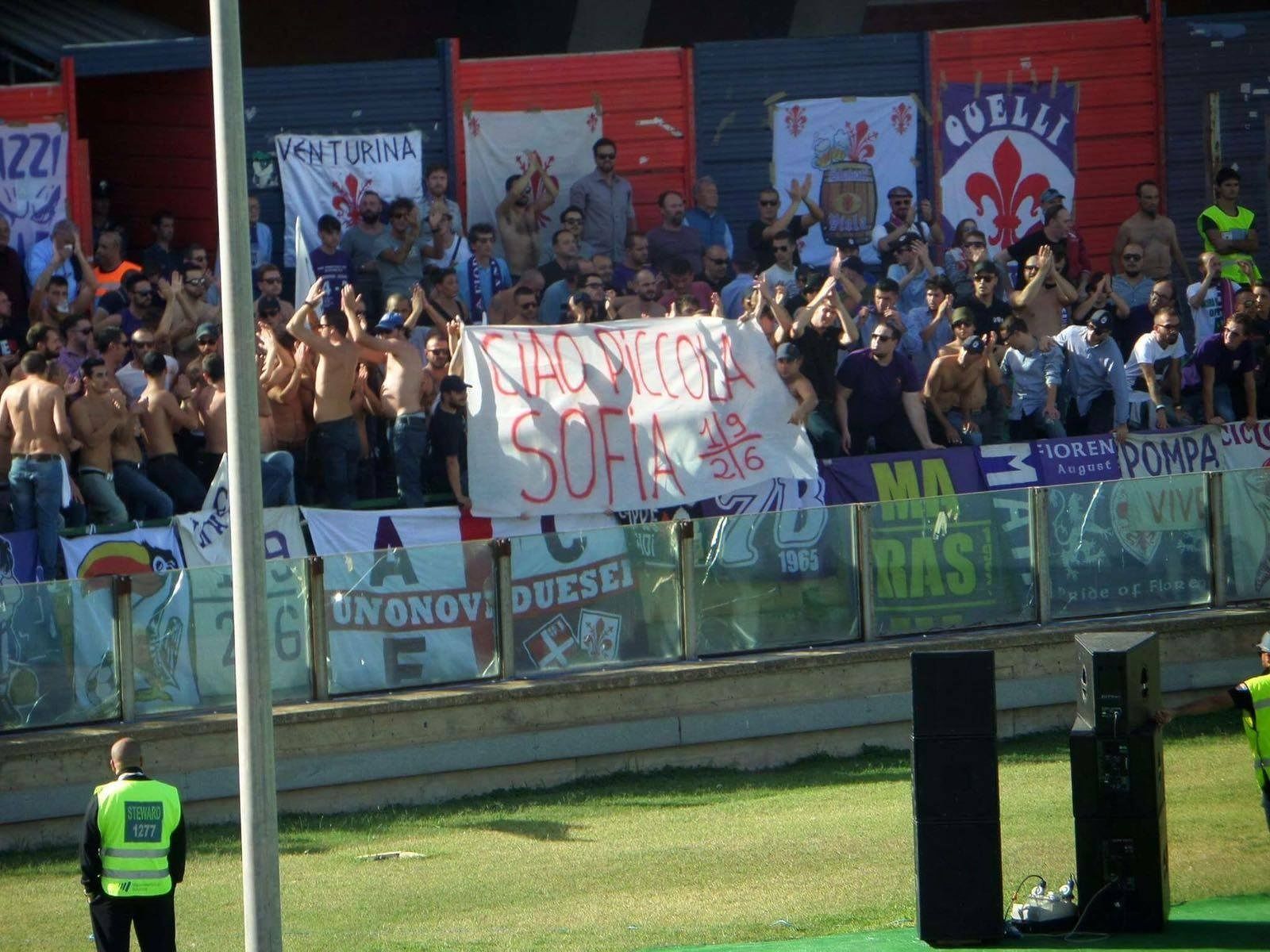 Lo striscione esposto domenica dagli ultras della Fiorentina al Sant'Elia, dedicato alla bimba cagliaritana morta venerdì alla Metro. Quando tristezza ...