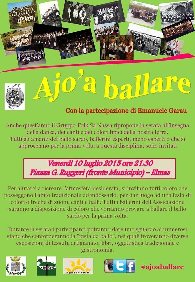 Venerdì 10 Luglio 2015, ore 21,30, Piazza G. Ruggeri (fronte Municipio) a Elmas