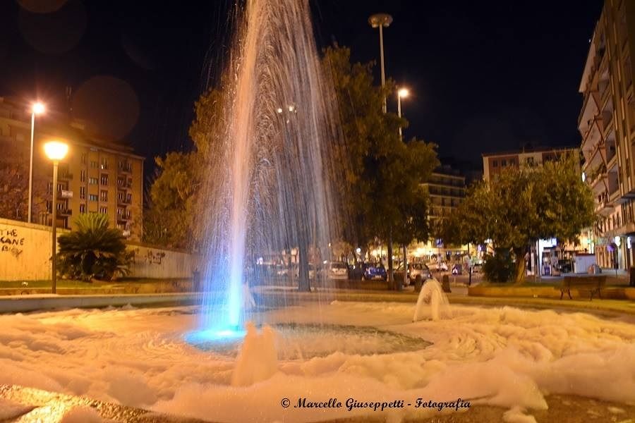 I furbetti hanno di nuovo riempito di schiuma la fontana di piazza Repubblica, che sembra però dimenticata