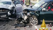 I Vigili del Fuoco hanno dovuto disincastrare uno dei tre feriti e mettere in sicurezza le vetture. Una di queste ...