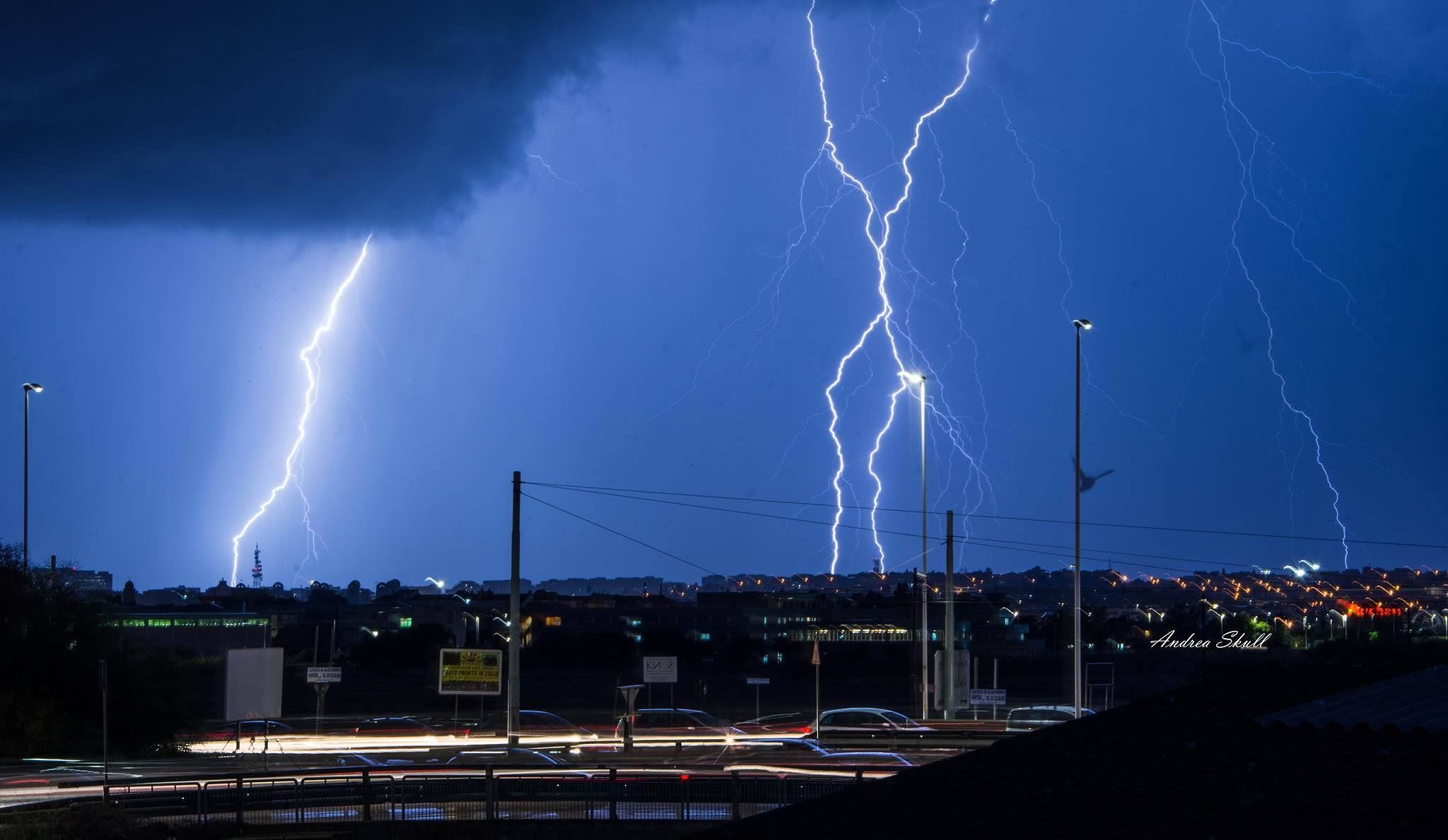 Tempesta di fulmini in viale Marconi: foto spettacolo di Andrea Skull