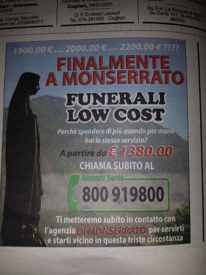 Gli strani annunci delle agenzie funebri nel Cagliaritano, tra outlet e maxi sconti: è guerra all'ultimo caro estinto