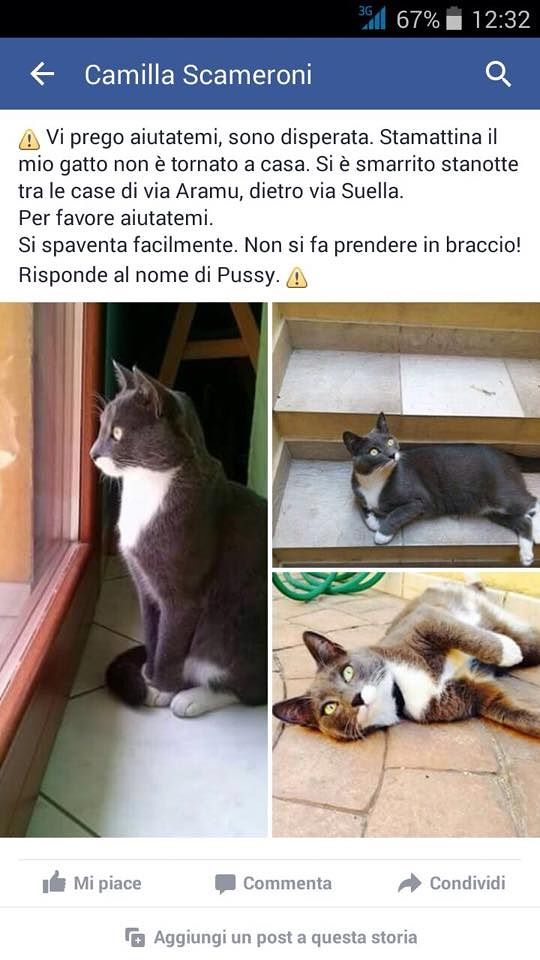 L'appello disperato della proprietario: "Vi prego, aiutatemi a ritrovare il mio gattino cardiopatico, ha bisogno urgente di medicine".