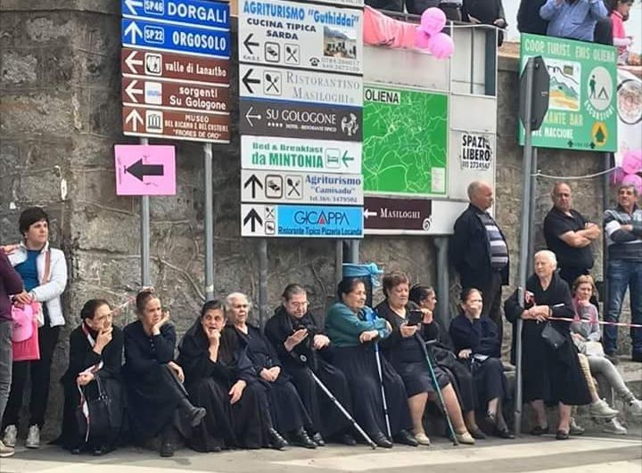 La foto più bella del giro. Le nonnine a Oliena che aspettano il passaggio dei ciclisti, sarde e orgogliose di ...