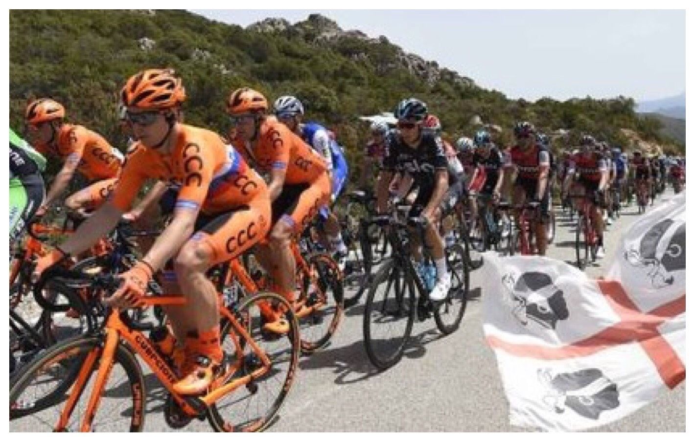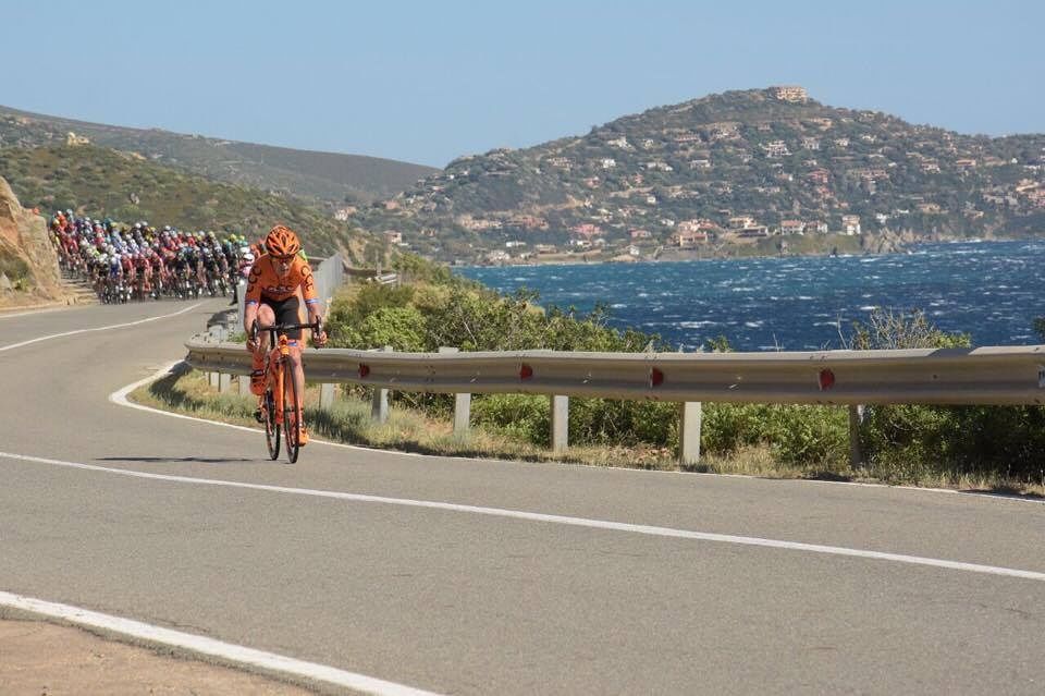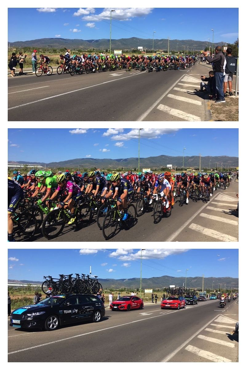 Il Giro d’Italia su uno sfondo da cartolina nel passaggio a Solanas