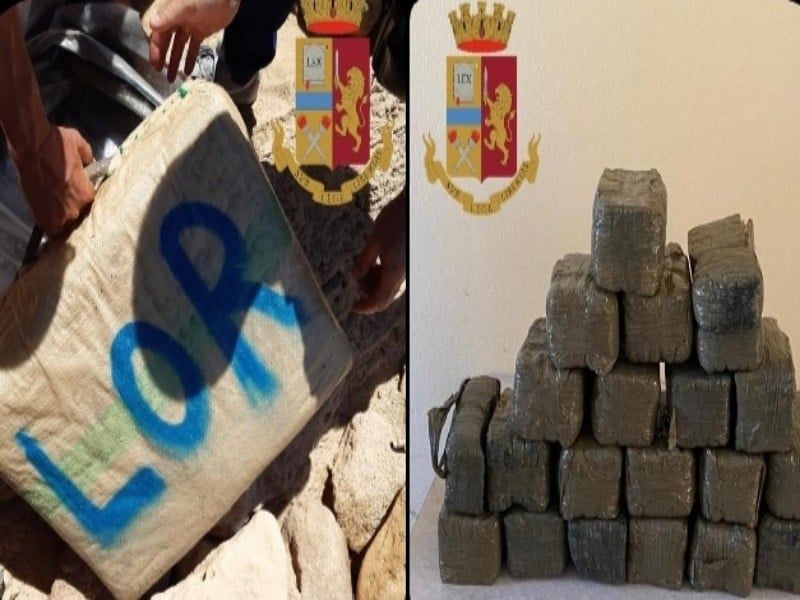 Un manufatto di nylon e nastro adesivo con dentro la sostanza stupefacente divisa in panetti da 100 grammi è stato ...