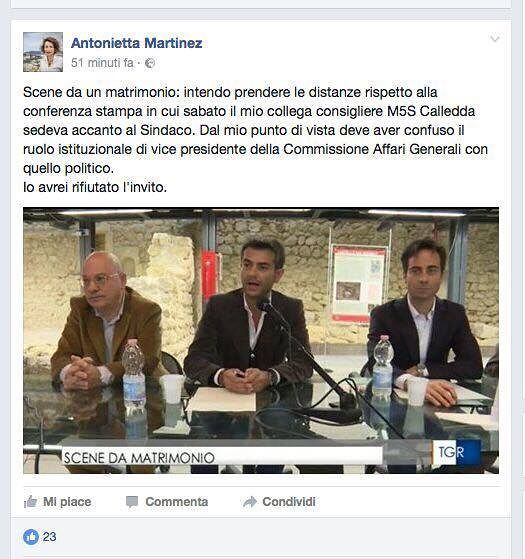 E' tensione nel gruppo dei pentastellati a Palazzo Bacaredda. A fare esplodere il caso la conferenza stampa sulle nozze civili ...